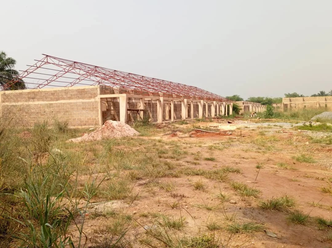 First block of six classrooms from the left,. Block works completed. Awaiting the erecting of the pillars.